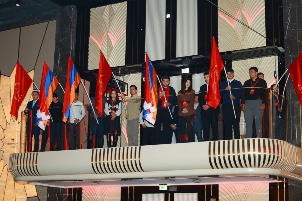Հանդիսութիւնը սկսաւ Հայաստանի ու Արցախի պետական քայլերգներով, հնչեց նաեւ Հայ յեղափոխական դաշնակցութեան քայլերգը: