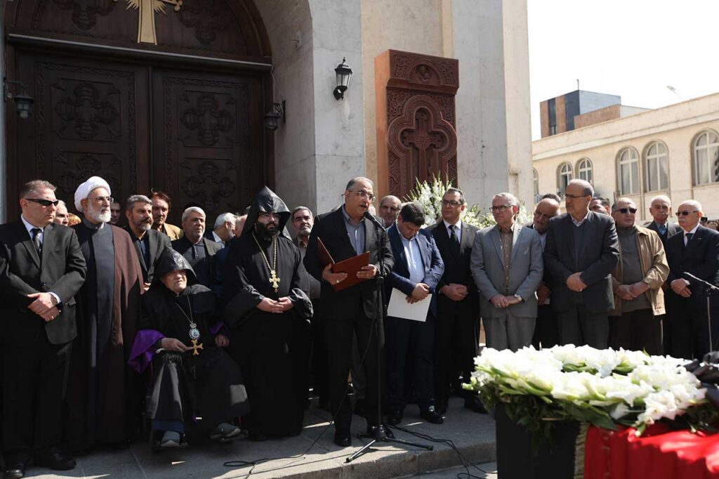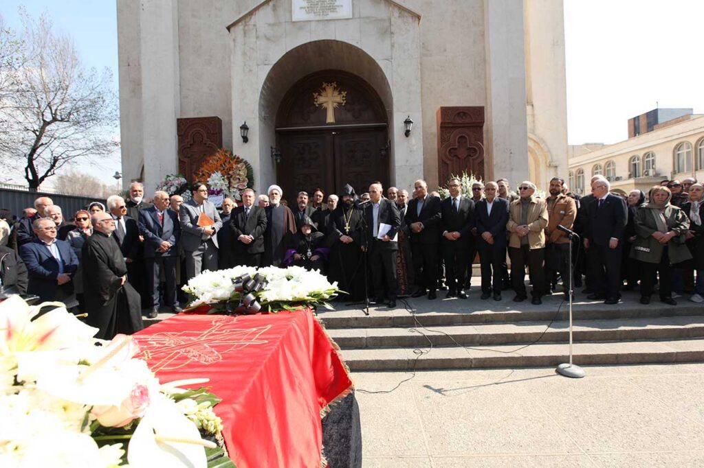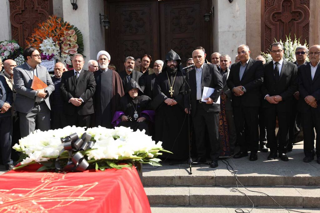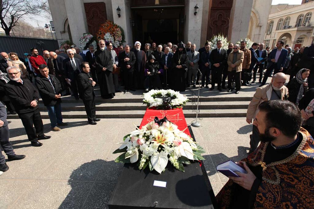 Օրւայ կրօնական, թաղման եւ արարողութիւններին ներկայ էին՝ ՀՅԴ Բիւրոյի անդամ Սեւան Դանիէլեանը, «Ալիք» հաստատութեան ներկայացուցիչ Գառօ Յովհաննիսեանը, Իրանի Իսլ. խորհրդարանում Սպահանի եւ հարաւային իրանահայութեան պատգամաւոր Գեղարդ Մանսուրեանը, Մեծի Տանն Կիլիկիոյ կաթողիկոսութեան Ազգային Կենտրոնական Վարչութեան Քաղաքական ժողովի անդամ՝ Յովսէփ Աւետեանը, Իրանի Իսլամական խորհրդարանի ներկայի եւ անցեալի ու կրօնական փոքրամասնութիւնների պատգամաւորներ, պետական տարբեր շրջանակների պատասխանատու դէմքեր, Թեհրանի Հայ Կաթողիկէ համայնքի առաջնորդ Տ. Սարգիս եպս. Դաւիթեանը, Թ. Հ. Թ. Պատգամաւորական ժողովի ատենապետ դոկտ. Սեւակ Հաթամեանը եւ պատգամաւորներ, Թ. Հ. Թ. Թեմական խորհրդի ատենապետ Վարուժ Յովհաննիսեանը, դիւանը եւ անդամներ, Թ. Հ. Թ. Կրթական խորհրդի ատենապետ Կարինէ Բալըքճեան եւ անդամներ, Թեհրանի Հայ Դատի յանձնախմբի նախագահ Իսակ Իւնանէսեանը, ակադեմիկոսներ, Կրօնական խորհրդի, Հաշւեքննիչ մարմնի, ազգային մարմինների ու միութիւնների ներկայացուցիչներ, գաղափարակից ընկերներ եւ մեծ թւով հայրենակիցներ:
