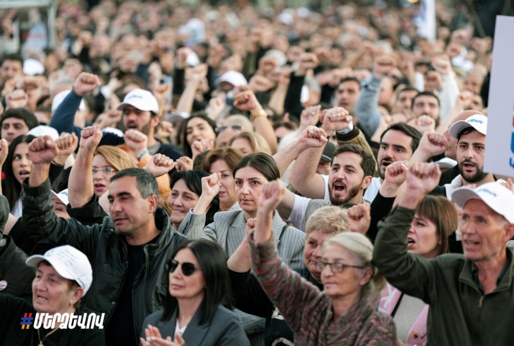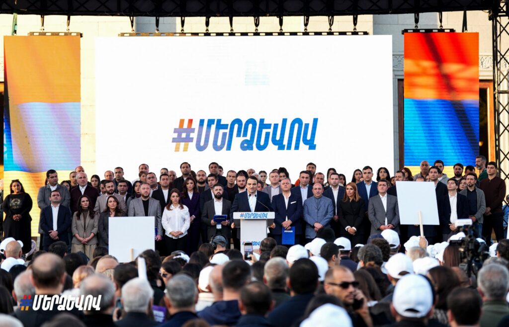 ԵՐԵՒԱՆ․- Շաբաթ, 18 Հոկտեմբերին, Ազատութեան հրապարակին վրայ տեղի ունեցաւ «Մեր ձեւով» շարժման հանրահաւաքը` ի զօրակցութիւն կալանաւորուած գործարար Սամուէլ Կարապետեանի ու հոգեւորականներու: