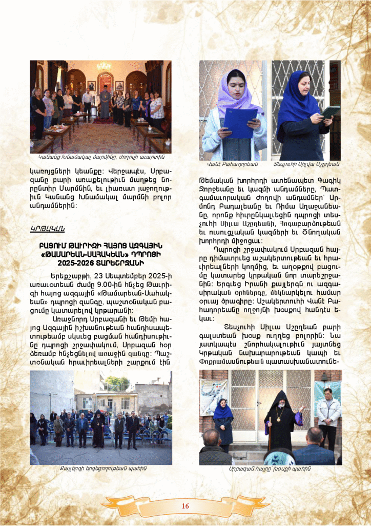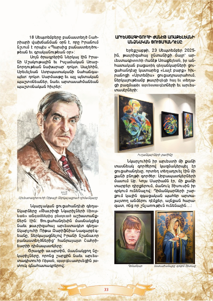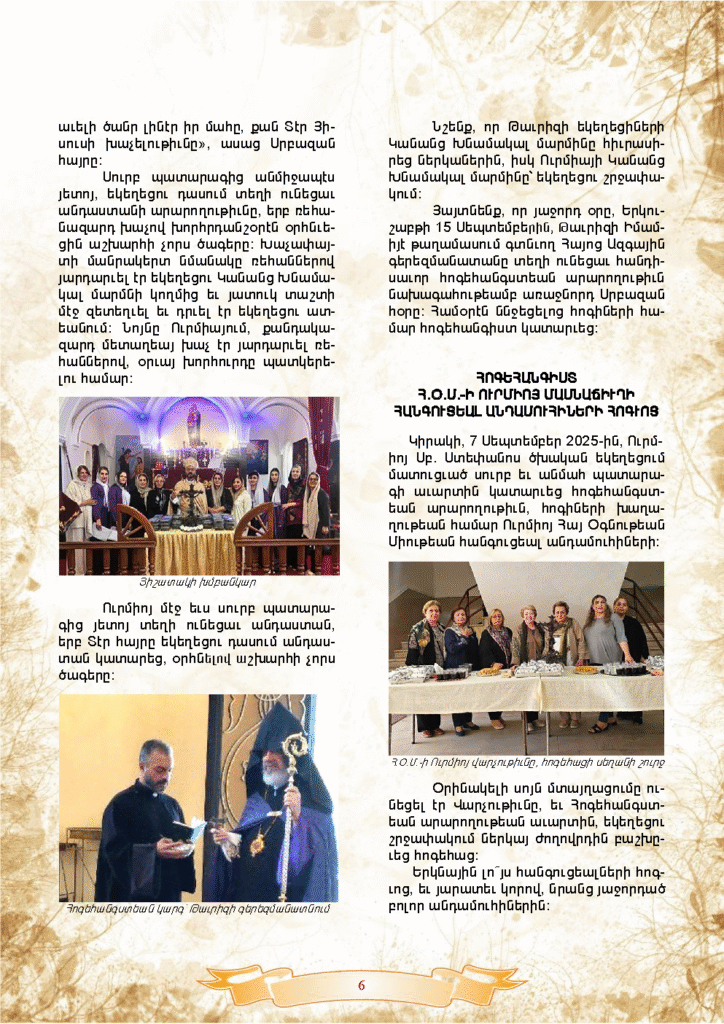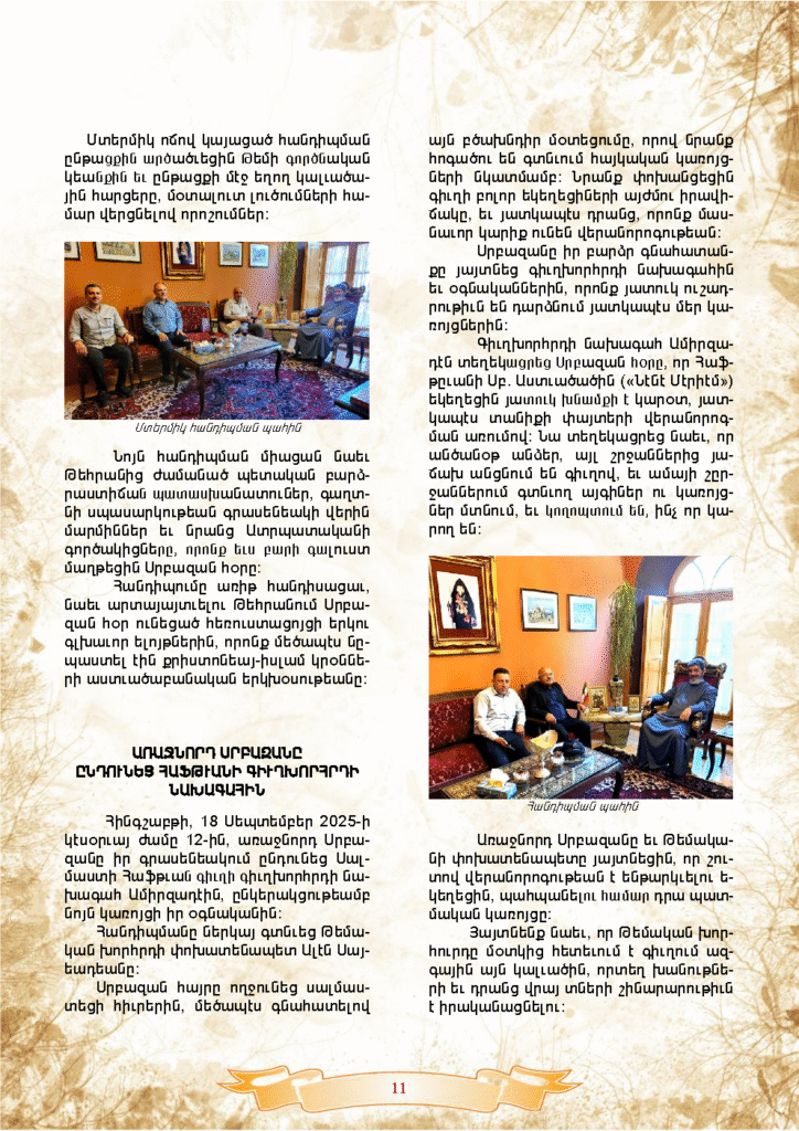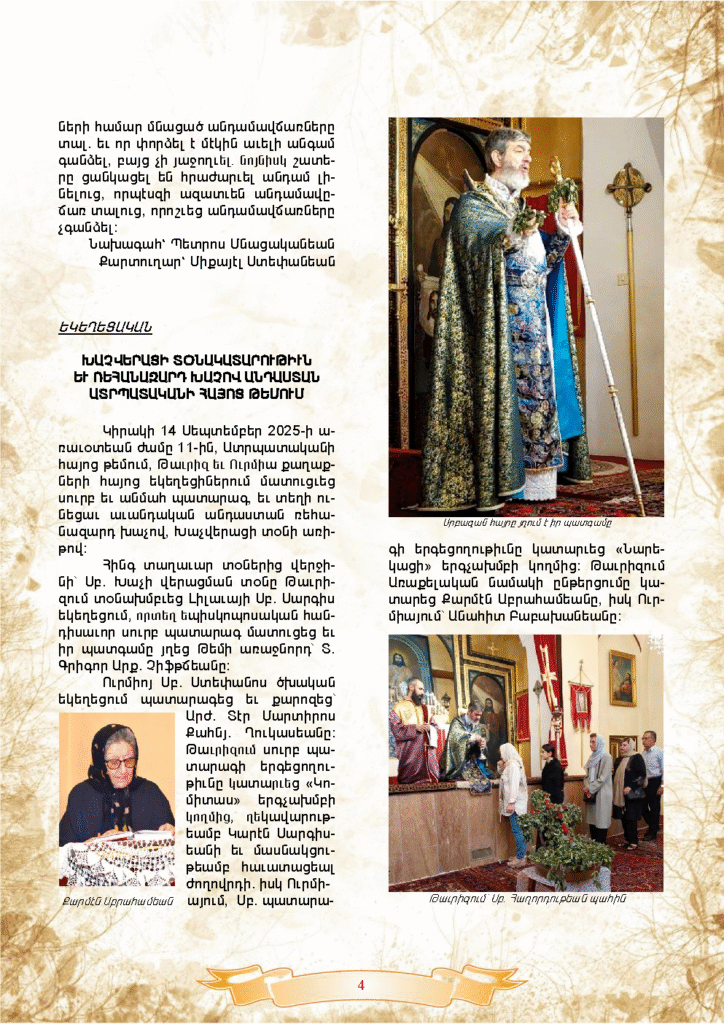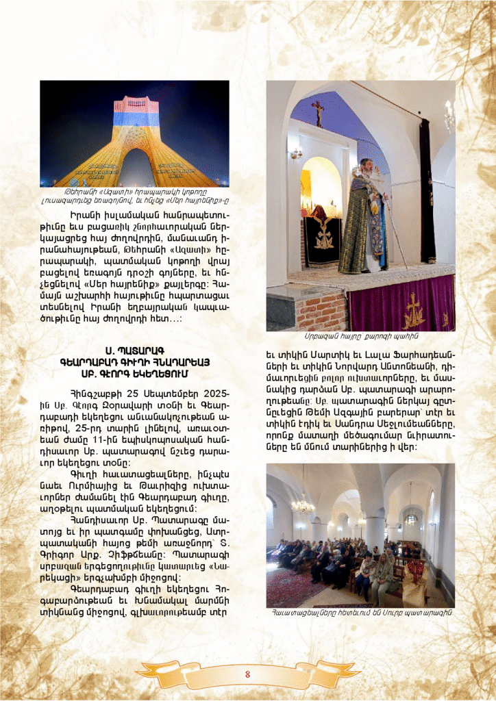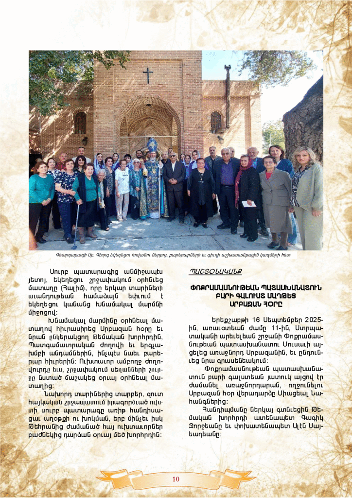 Ուրախութեամբ ստացել ենք Ատրպատականի Հայոց Թեմի պաշտօնաթերթ՝ «Արտազ»ի 10 րդ տարուայ 9րդ համարը(Սեբտեմբեր 2025):