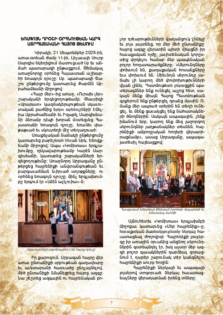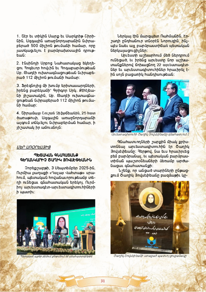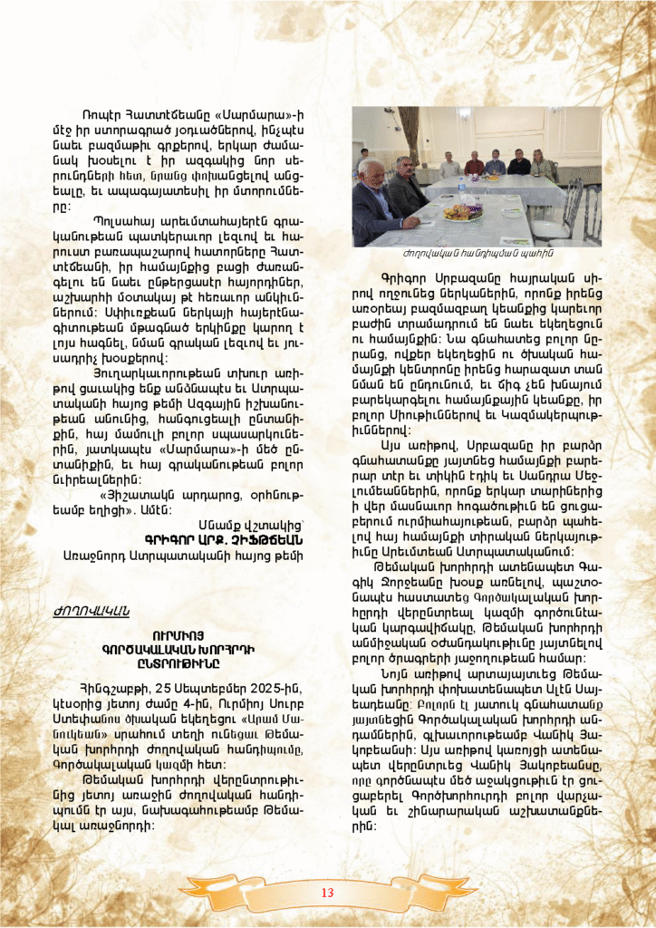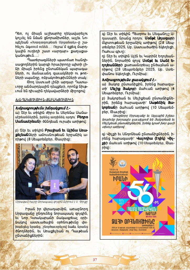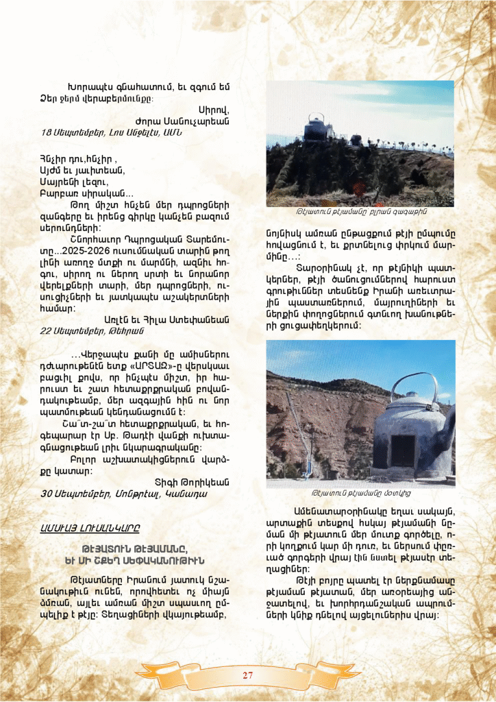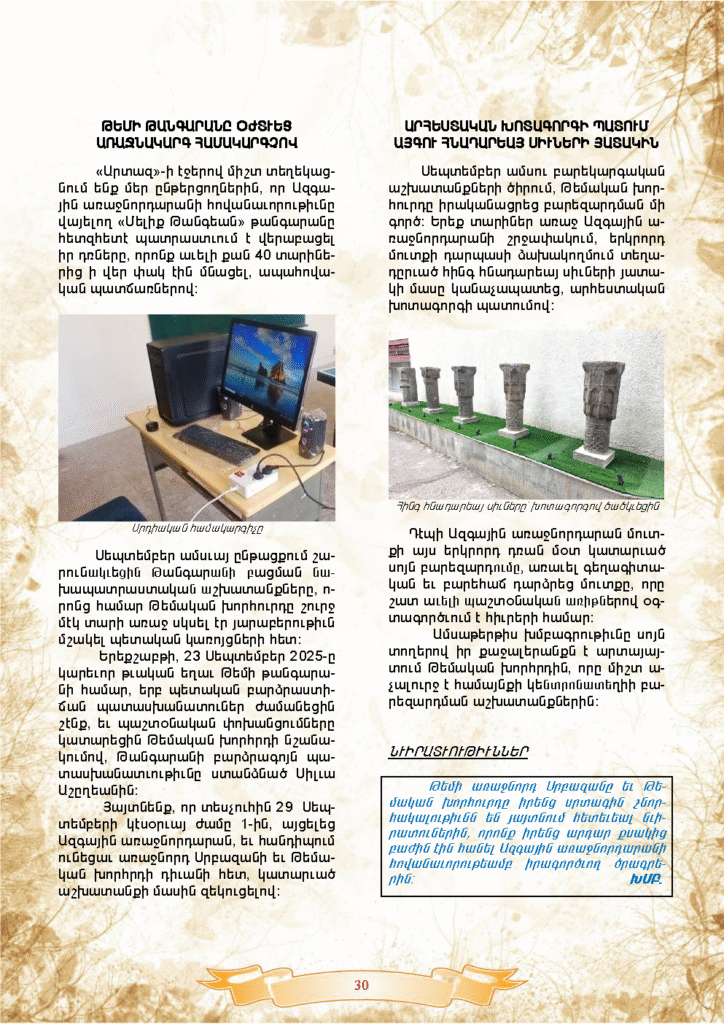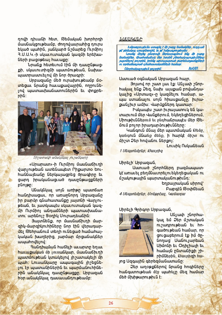 Ուրախութեամբ ստացել ենք Ատրպատականի Հայոց Թեմի պաշտօնաթերթ՝ «Արտազ»ի 10 րդ տարուայ 9րդ համարը(Սեբտեմբեր 2025):