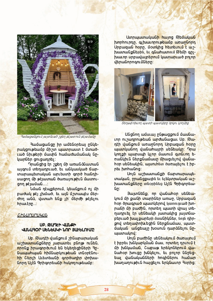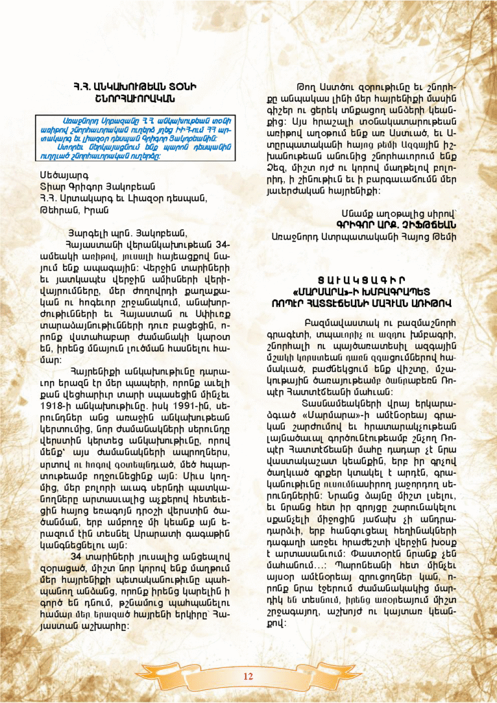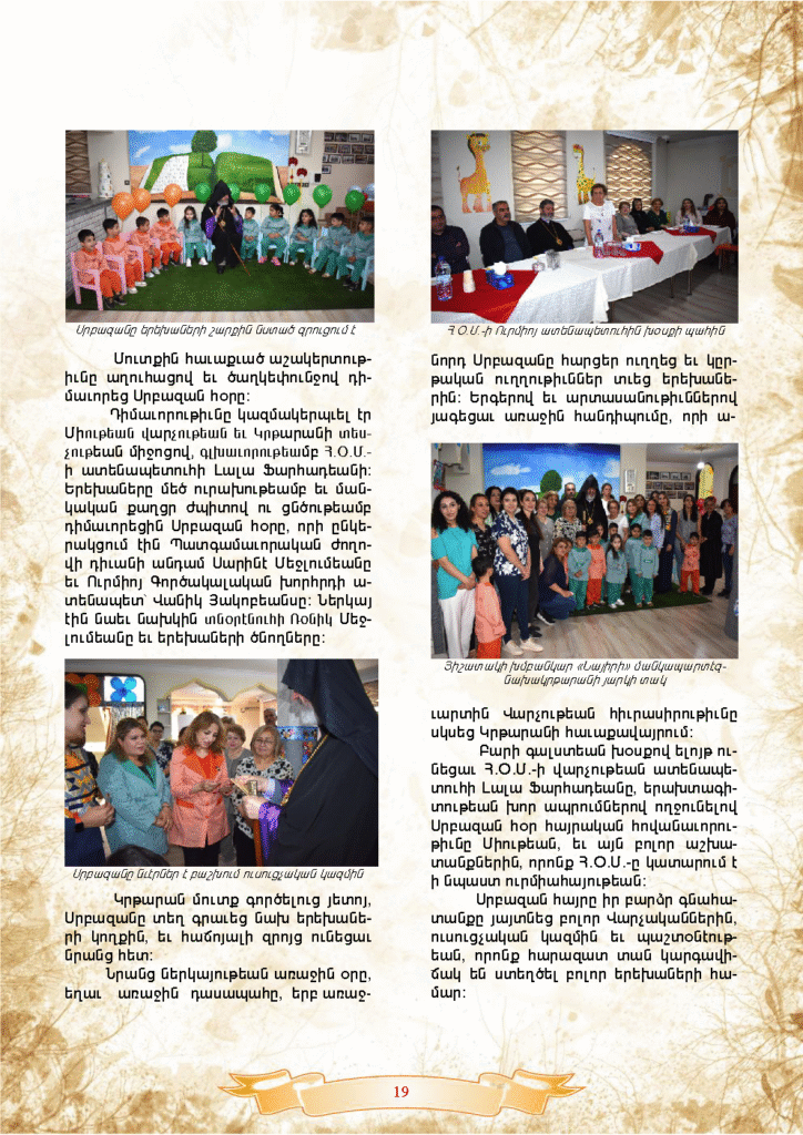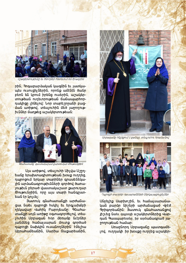 Ամսաթերթը անխափան հրատարակւում է 2012ից ամսական դրութեամբ և գունագեղ էջերով ներկայացնում Իրանի Ատրպատականի թեմի ացգային կեանքն ու գործունէութիւնը: