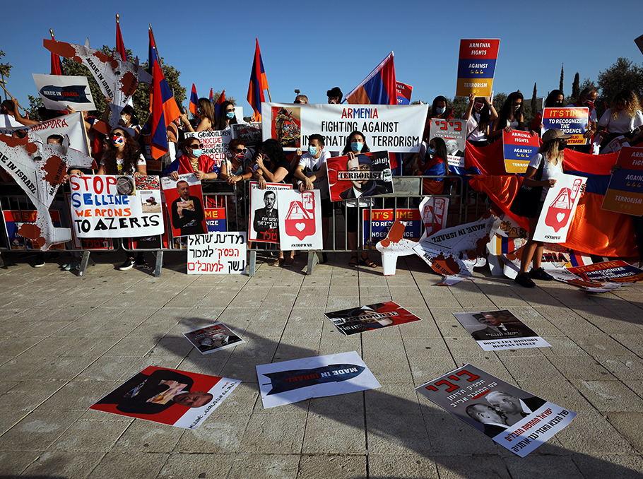 2020 թուականի մարտական գործողութիւնների ժամանակ ANCA-ն կոչ արեց իսրայէլցի պաշտօնեաներին դադարեցնել Բաքուին զէնքի վաճառքը՝ պնդելով, որ դրանց շարունակական մատակարարումները կդիտուէն որպէս յանցակցութիւն։ 2025 թուականի վերջին արուած յայտարարութեան մէջ, որով փորձ էր արւում Գազայի շուրջ բանաւէճը ընդգրկել Կովկասեան օրակարգում, ANCA-ն պնդում էր, որ Ադրբեջանը օգտագործում է Պաղեստինի հարցը սեփական բռնութիւնը «քօղարկելու» համար՝ Իսրայելին կրկին դարձնելով իր բարոյական մեղադրանքների թիրախը։