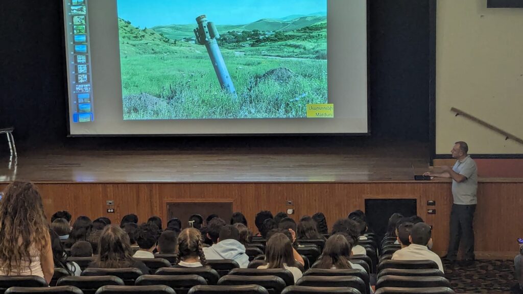 At Sourp Hagop Armenian School, under the leadership of Principal Mrs. Lori Abrakian, charchafian presented to students in grades 5–11 about Artsakh’s humanitarian situation and the importance of community led advocacy.